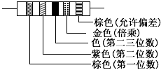 1)在电阻体的一端标以彩色环,电阻的色标是由左向右排列的,图1的电阻为27000Ω±0.5%。